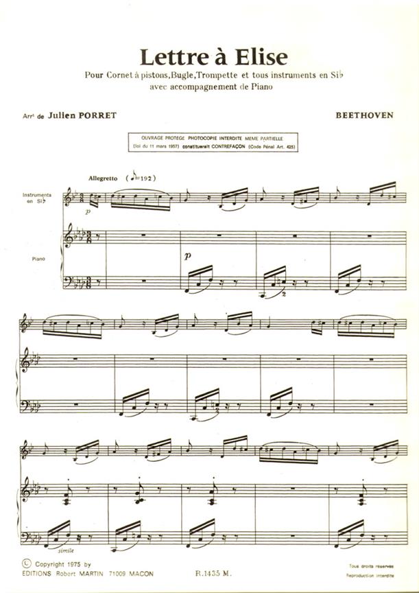Lettre A Elise, Sib (Für Elise) BEETHOVEN LUDWIG VAN