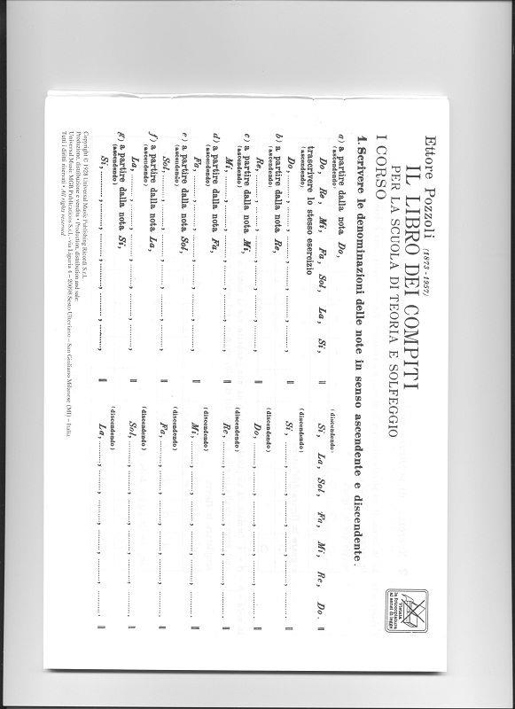 Libro Dei Compiti Per La Scuola Di Teoria E Solfeggio Fasc. I POZZOLI ETTORE