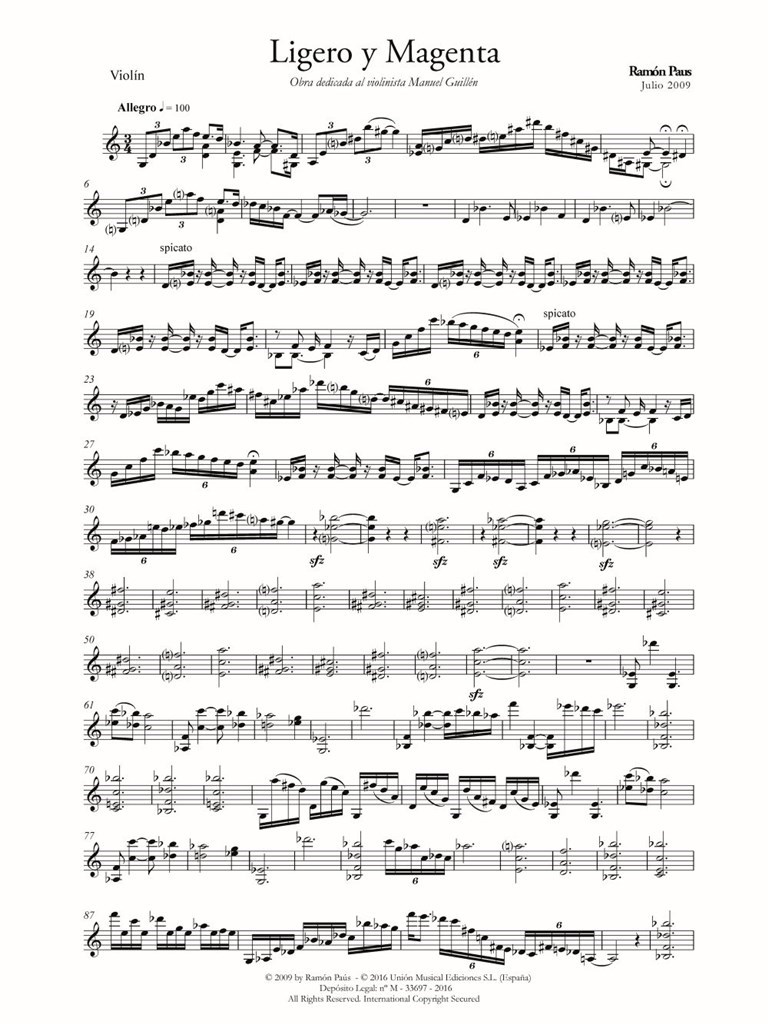 The composition represents an apparently contradictory quality and colour, since the colour enunciated in the title of the work does not have lightness as an essential component of its chromatic nature. In the course of this work, very light arpeggios are traversed where the melody of the upper voice appears fragmented while the performer completes the rest of the notes harmonically associated with this melody. This fragmentation, far from cutting the singing line, gives this melody a special way of being. In contrast to these passages where lightness and fluidity are essential characteristics, others appear where double, triple and even quadruple strings are present, giving the work a more leaden aspect.