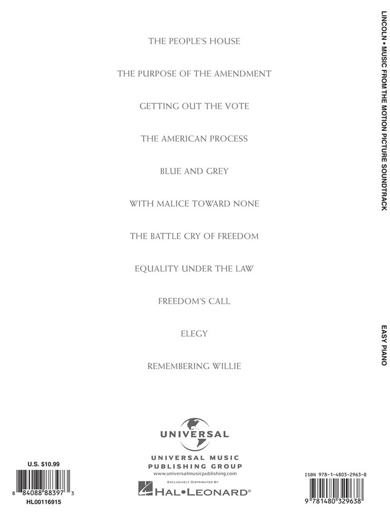 Lincoln – Easy Piano WILLIAMS JOHN