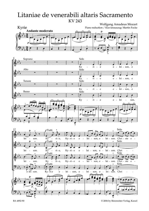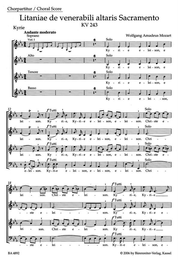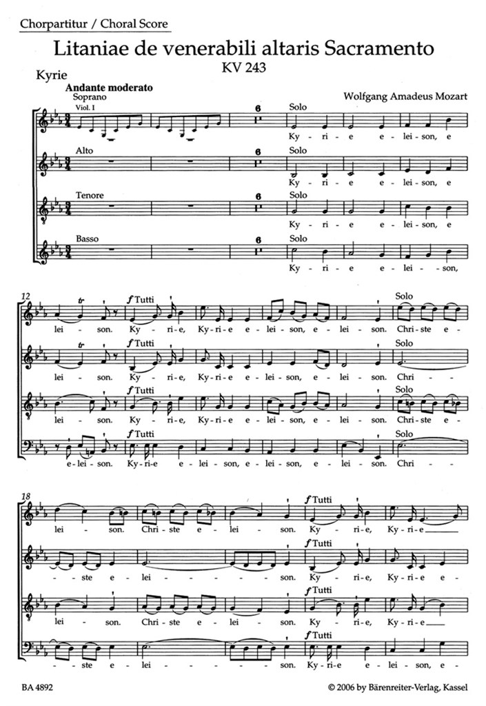 Litaniae De Venerabili Altaris Sacramento MOZART WOLFGANG AMADEUS