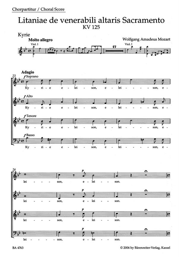Litaniae De Venerabili Altaris Sacramento MOZART WOLFGANG AMADEUS