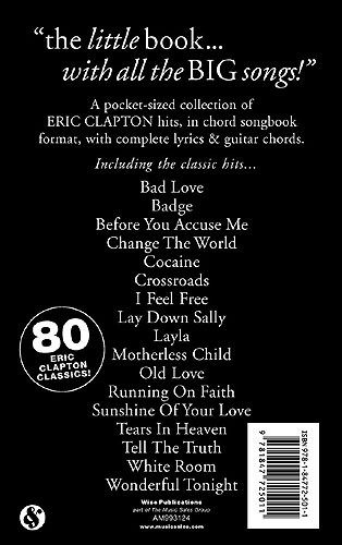 Une collection de poche des meilleurs succès d’Eric Clapton, au format de recueil d’accords, avec des paroles complètes et des accords de guitare. Comprend 80 classiques de Clapton !