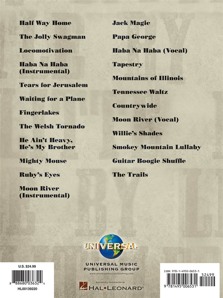 Vingt-deux transcriptions note pour note tirées de l’album double studio du virtuose australien du fingerpicker. Les chansons incluent : Countrywide · Les Lacs des Doigts · Haba Na Haba · À mi-chemin du retour · Jack Magic · Locomotivation · Rivière de la Lune · Les Yeux de Ruby · Berceuse des Montagnes Fumantes · Tapisserie · En attente d’un avion · et plus encore.