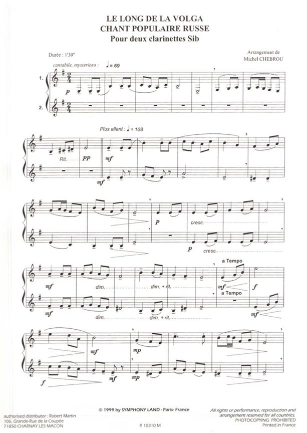 Long De La Volga (Duo De Clarinettes Sib) CHEBROU MICHEL