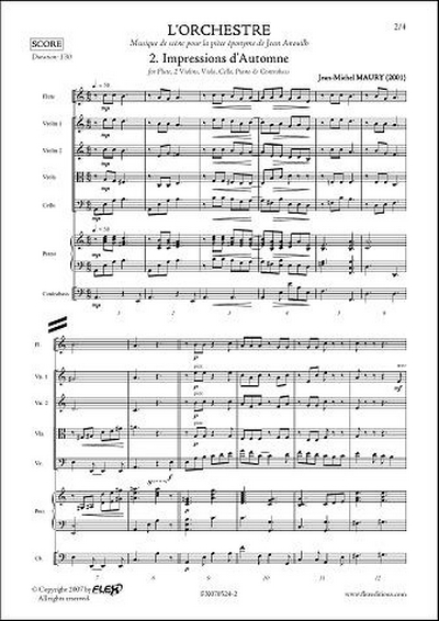 Flûte, Clarinette Sib, Piano, Trompette, 2 Violons, Alto, Violoncelle, Contrebasse