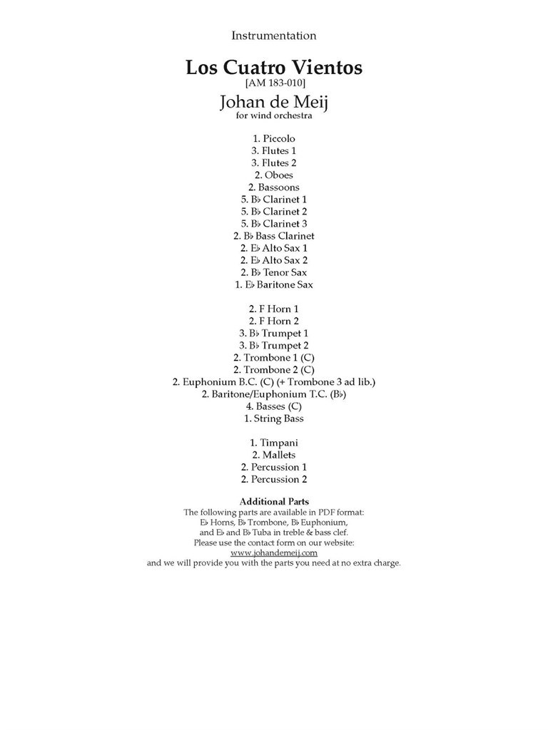 Los Cuatro Vientos est la première composition de Johan de Meij pour le niveau 2,5. Une suite enjouée en quatre mouvements, chacun dépeignant les directions du vent : les Quatre Vents pour Vents !