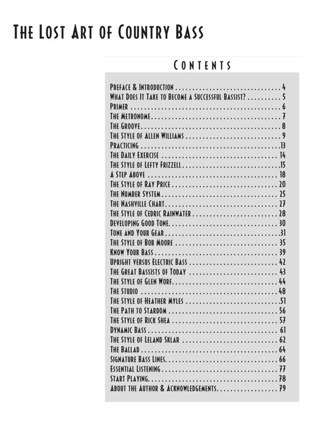 Une introduction à la basse de pays pour les joueurs électriques ou debout. Ce pack de livre/CD est d'un initié basse de pays jouant sur scène et en studio. Le livre comprend des enseignements et la musique dans le style de Hank Williams, Lefty Frizzel, Marty Stuart, David Ball et plus encore. Le CD comprend 35 chansons avec pleine bande de sauvegarde. Vous apprendrez des lignes de basse de pays classique et moderne, comment être un bassiste studio, comment lire la musique avec le système de numération de Nashville et bien plus encore ! Une amorce de pays tueuses. " Bass Player magazine