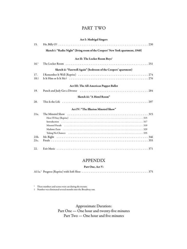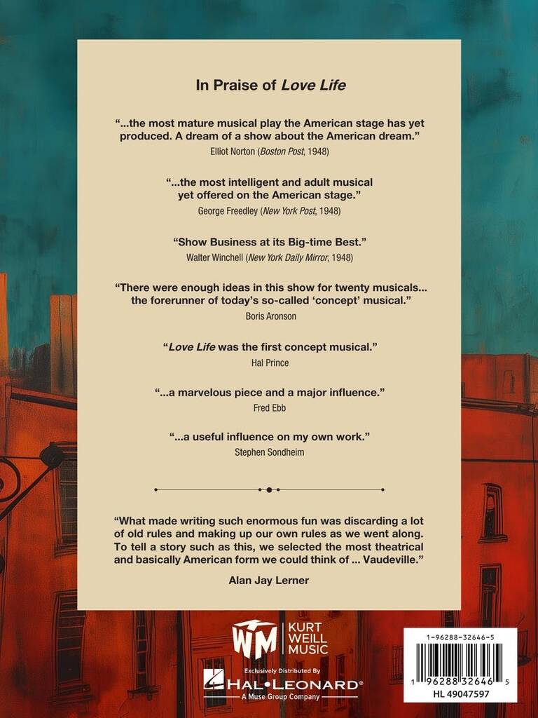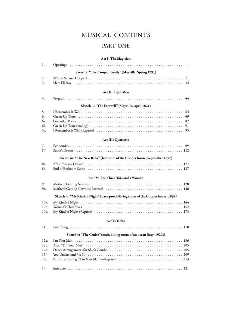 The first-ever published vocal score of the influential Weill-Lerner Broadway Vaudeville, the visionary 1948 show that laid the foundations for the concept musical. Based on an award-winning critical edition, this publication includes synopsis, cast list with vocal ranges, instrumental cues, and more. Songs include: Economics · Here I'll Stay · I Remember It Well · Love Song · Mr. Right · and more.
