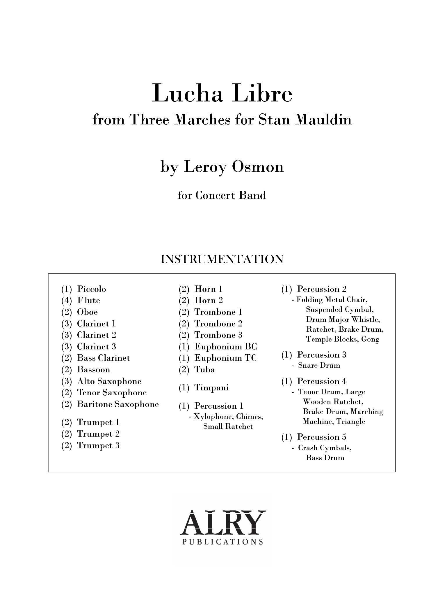 Lucha Libre de Leroy Osmon est un ensemble de Three Marches pour Stan Mauldin. Musique pour orchestre d’harmonie.