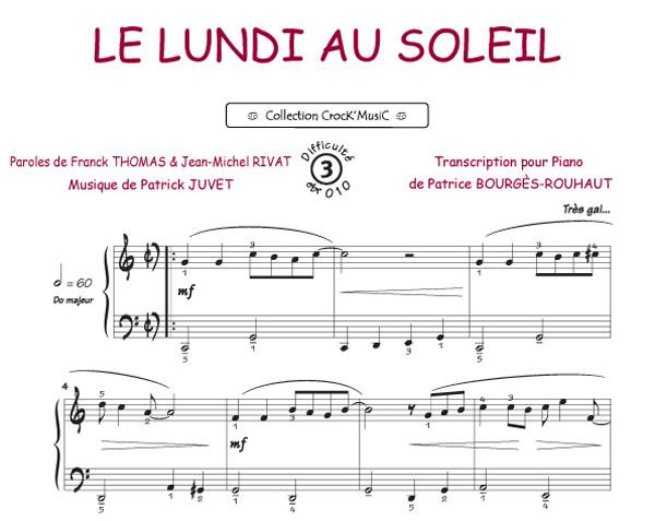 Le lundi au soleil - Juvet, Patrick (Collection CrocK'MusiC) Arrangement Piano - 1+ feuillet pour paroles - niveau : Facile