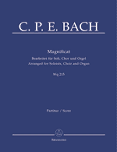 Carl Philipp Emanuel Bach wrote his first great vocal composition, the Magnificat, in 1749 at the age of 35. It bears all the earmarks of ; audition music, i. e. a piece that organists and choir directors had to submit when applying for a new position. This feature is especially evident in its stylistic variety, which makes the work a rewarding and colorful challenge for all church choirs. Special attractions are the work's contrapuntal passages, which are very similiar in sound and structure to those of J. S. Bach's B minor Mass. The present arrangement for soloists, chorus and organ is intended as a self contained version accessible to a widerange of choirs, even those with limited financial means. - Self contained version for soloists (SATB), chorus (SATB) and organ - Ideal for use in church and concert hall - Clear and well presented organ part - Duration: ca. 40 minutes The Bärenreiter CHOIR& ORGAN Series presents great choral works in arrangements for soloists, choir and organ; no orchestra is needed. The original orchestral parts have been transcribed into straight-forward organ reductions whereby the contemporary tradition of such arrangements has been taken into consideration. In some cases, the original organ version by the composer has been used. The Organ parts are presented on three staves. The choir and solo parts always remain true to the original. One edition can be used by soloists, singers and Organist alike.