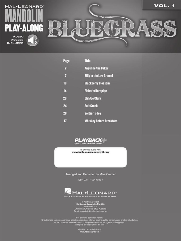 Ce volume de la mandoline Play-Along série dispose de 8 airs traditionnels Bluegrass tous soigneusement disposés pour Mandoline en notation standard et tablature.