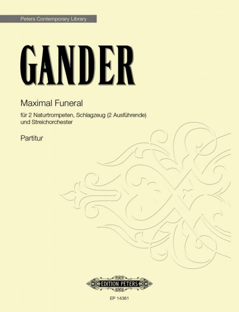 Maximal Funeral by Bernhard Gander is a 13-minute work for two natural trumpets, percussion (two players) and string orchestra. The piece is a long funeral march and was inspired by the fact that years before his death Emperor Maximilian always took a coffin with him on his travels to be prepared for it. Maximal Funeral was made possible by the Hilde Zach Scholarship 2017 by the City of Innsbruck. The premiere performance by the Tiroler Kammerorchester InnStrumenti conducted by Gerhard Sammer took place on 9 March 2019 at the Canisianum, Innsbruck (Austria). T he full score (EP 14361) is available for sale as part of the Peters Contemporary Library. The performance material can be hired.