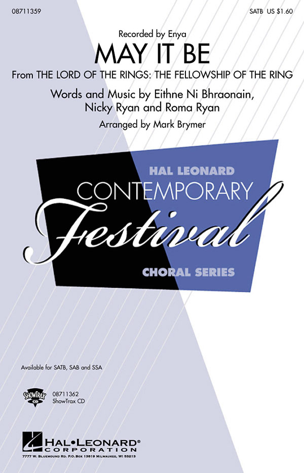 May It Be (Lord Of The Rings) . SATB Acc. (Le seigneur des anneaux) ENYA