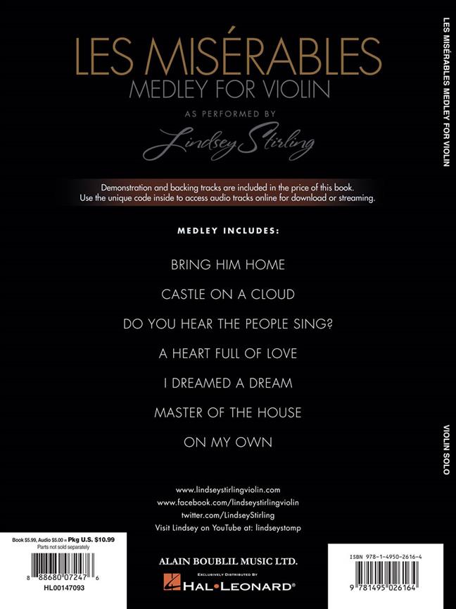 Now you can play Lindsey Sterling's Les Miserables Medley for Violin note-for-note along with beautiful sound-alike backing tracks.