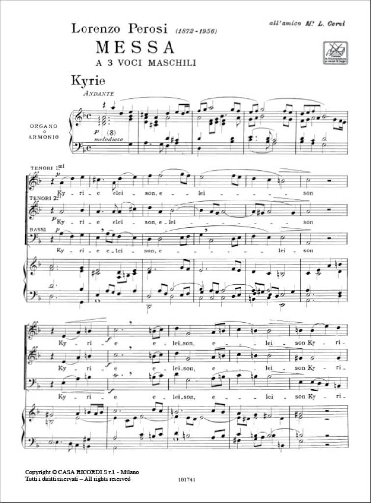 Messa A 3 Voci Maschili In Re Minore Cerviana Con Accompagnamento Di Organo O Armonio PEROSI LORENZO