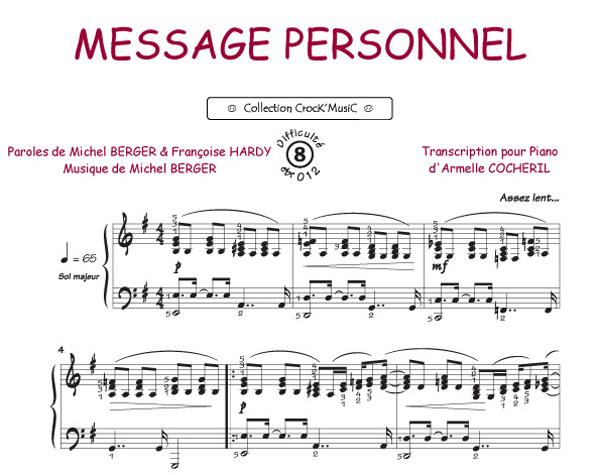 Message personnel - Berger, Michel / Hardy, Françoise (Collection CrocK'MusiC) Arrangement Piano - 2 + feuillet pour paroles - niveau : Moyen
