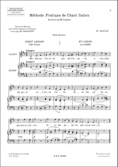 Méthode Pratique De Chant Italien – Ed. Durand Voix Elevée VACCAI NICOLA