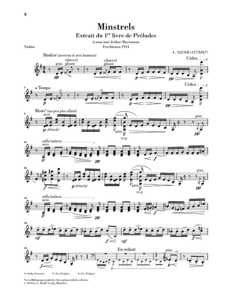 Minstrels From Préludes I For Violin And Piano DEBUSSY CLAUDE