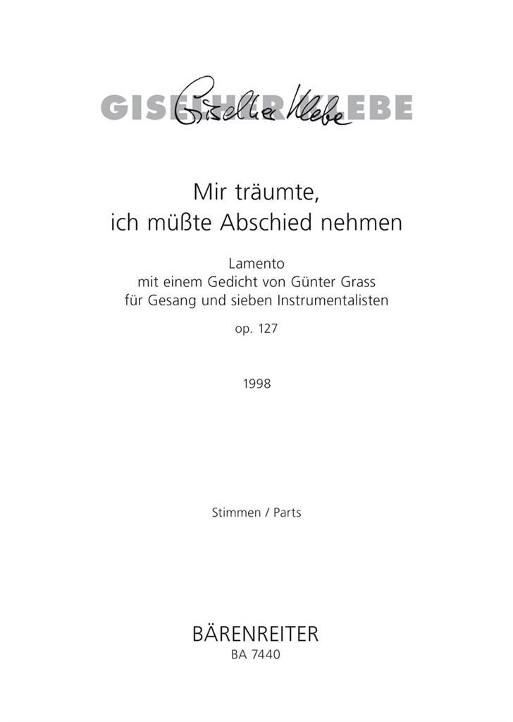 • Sous titre : Lamento mit einem Gedicht von Günter Grass für Gesang und sieben Instrumentalisten