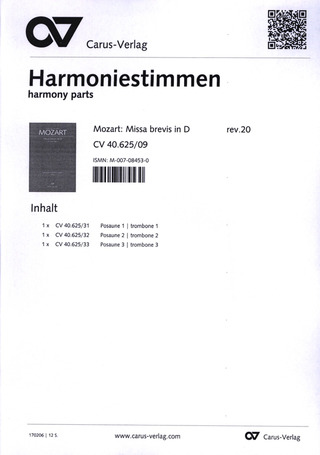 Missa Brevis In D MOZART WOLFGANG AMADEUS