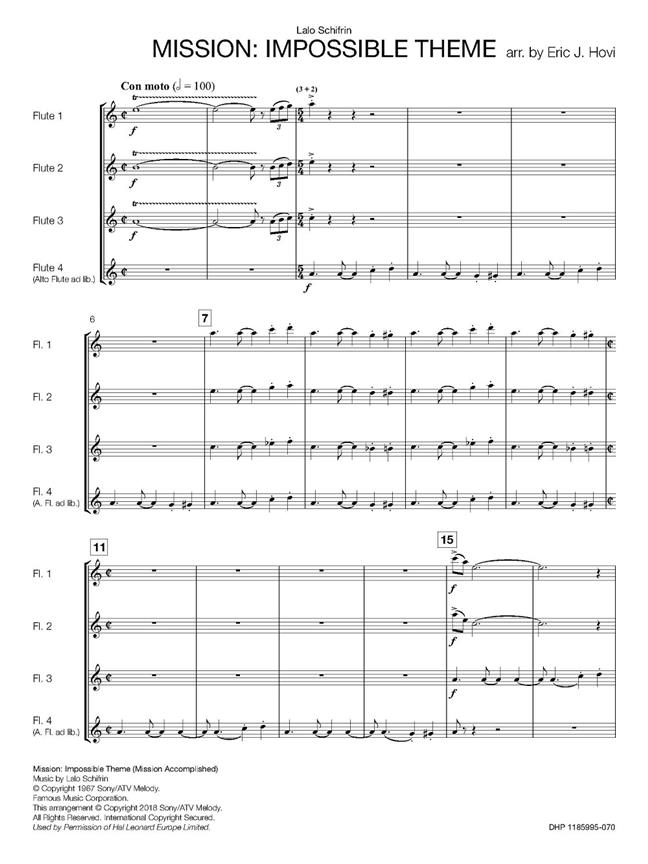 Mission : Impossible Theme – Arr.Eric J.Hovi – Score + Parties SCHIFRIN LALO