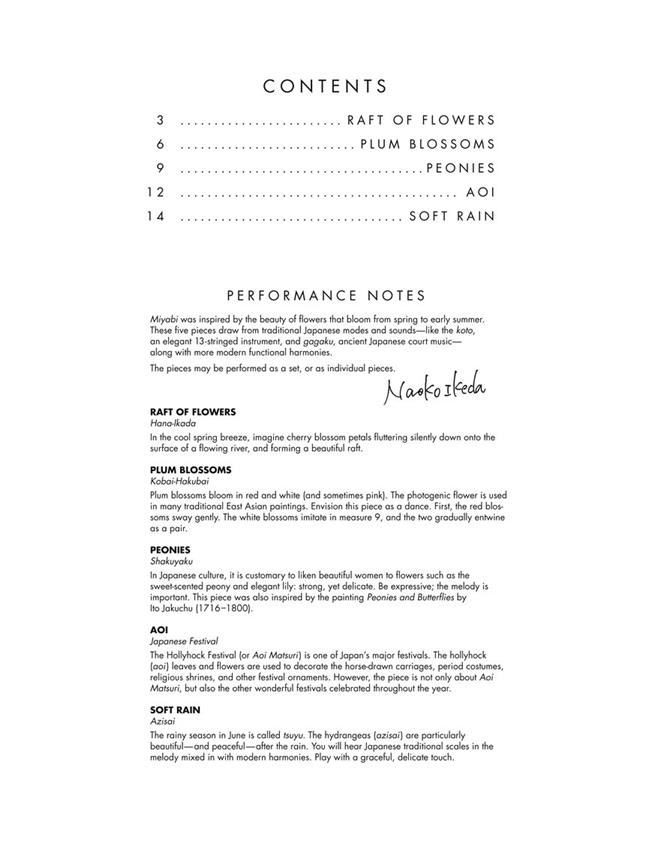 Cette brève, très belle collection a été inspirée par les fleurs qui fleurissent en fin de printemps et début de l'été. Miyabi est une esthétique japonaise qui signifie "élégant" ou "raffinée". Ikeda entremêle modes japonaises et des harmonies résolument modernes tout au long, ce qui entraîne un ensemble de pièces qui peuvent être effectuées que d'une suite, ou individuellement.