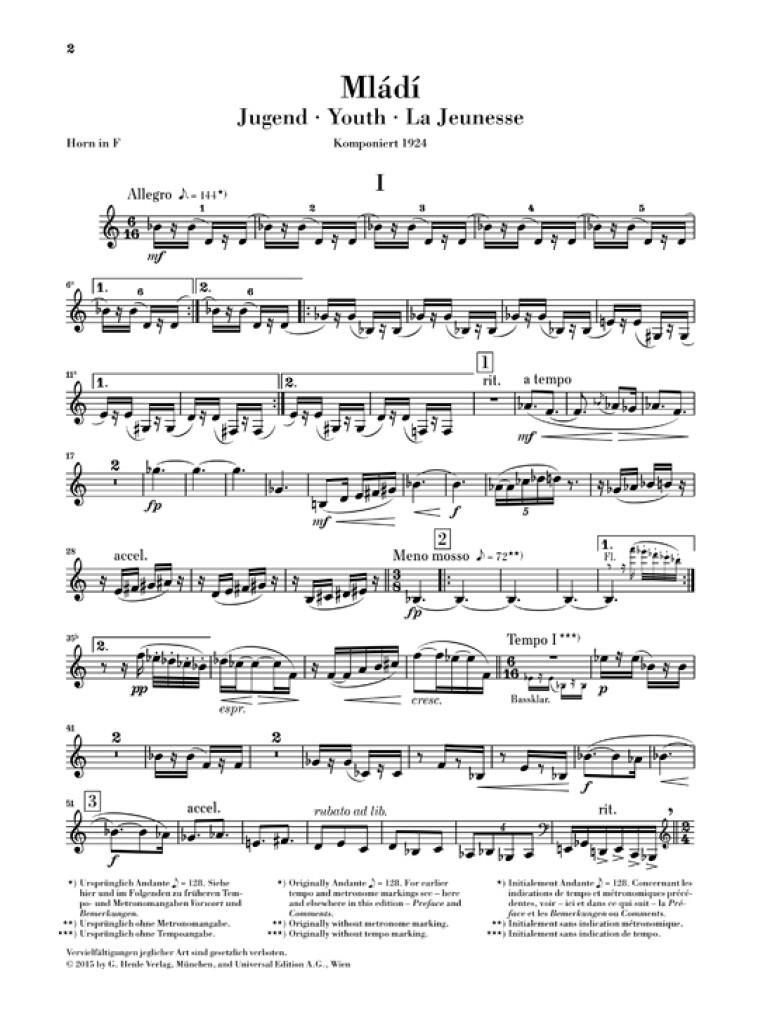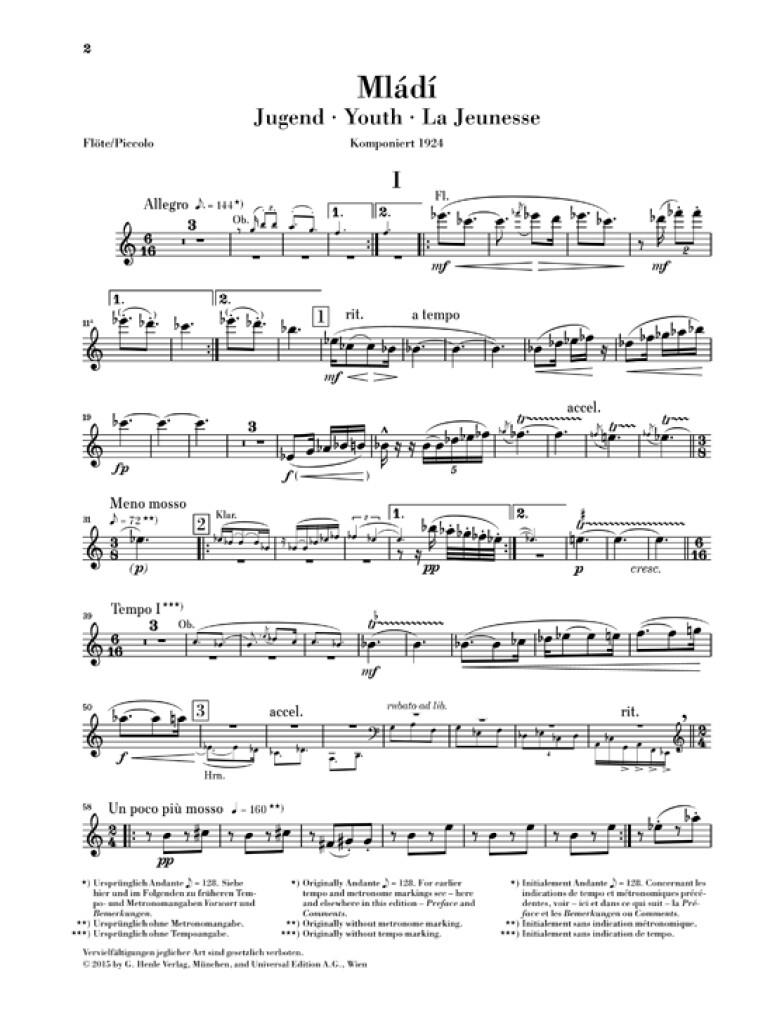 Leoš Janácek composa sa suite pour instruments à vent Mládí - en français: Jeunesse - en 1924, alors qu'il était déjà âgé de plus de 70 ans. Comme il existe de nombreuses sources de l'oeuvre, il est difficile de filtrer les dernières intentions du compositeur. Jirí Zahrádka, des archives Janácek de Brno, est parvenu dans notre édition Urtext - que nous présentons en collaboration avec les éditions Universal de Vienne - à s'acquitter de cette tâche avec bravoure: il se base ici pour la première fois sur toutes les sources manuscrites, ce qui lui permet, par exemple, de donner de précises indications concernant les nombreuses variantes de tempo.