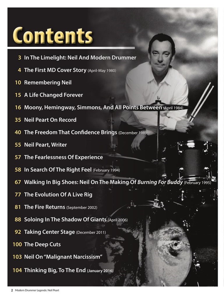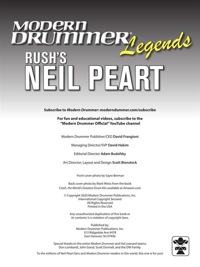 Neil Peart's ten appearances on the cover of Modern Drummer magazine span the years 1980, when he was five albums and several tours into his historic run with the Canadian progressive rock band Rush, and 2020, the year of his passing. No other drummer has come close to appearing so many times on the front of a drum publication, certainly not the world's most recognized one. This, the first installment in Modern Drummer magazine's Legends book series, collects all nine of Peart's cover stories, plus the complete contents of his May 2020 Modern Drummer tribute issue. Highlights include analyses of Neil's performances on every Rush studio album, a survey of the evolution of his famous live drumkits, transcriptions of deep Rush cuts, and much more.