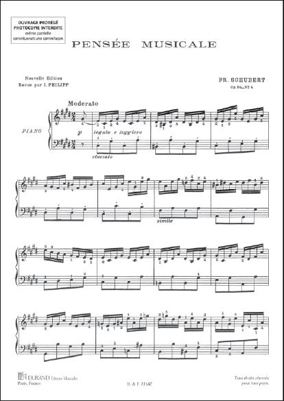Moment Musical Pensee Musicale Op. 94 N. 4 Pour Piano SCHUBERT FRANZ