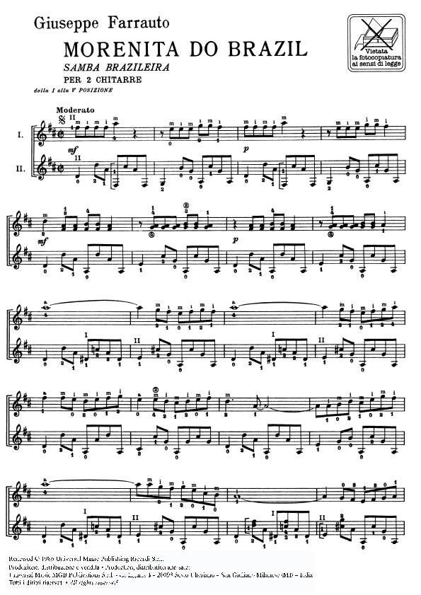 Morenita Do Brazil. Samba Brazileira Per 2 Chitarre FARRAUTO G.