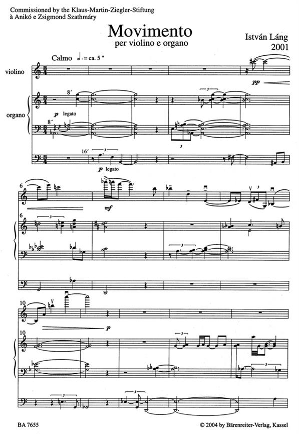 Movimento Per Violino E Organo (2001) LANG ISTVAN
