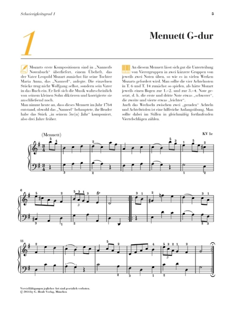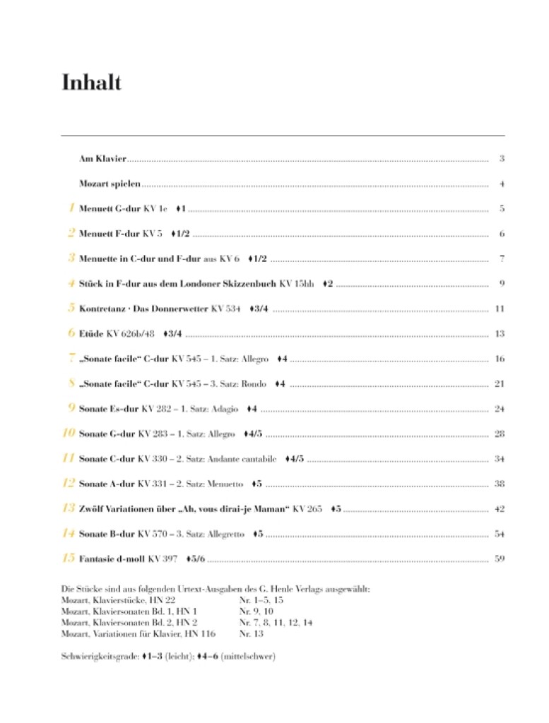 15 pièces originales pour piano de Wolfgang Amadeus Mozart destinées aux élèves de niveau intermédiaire. Édition en allemand.
