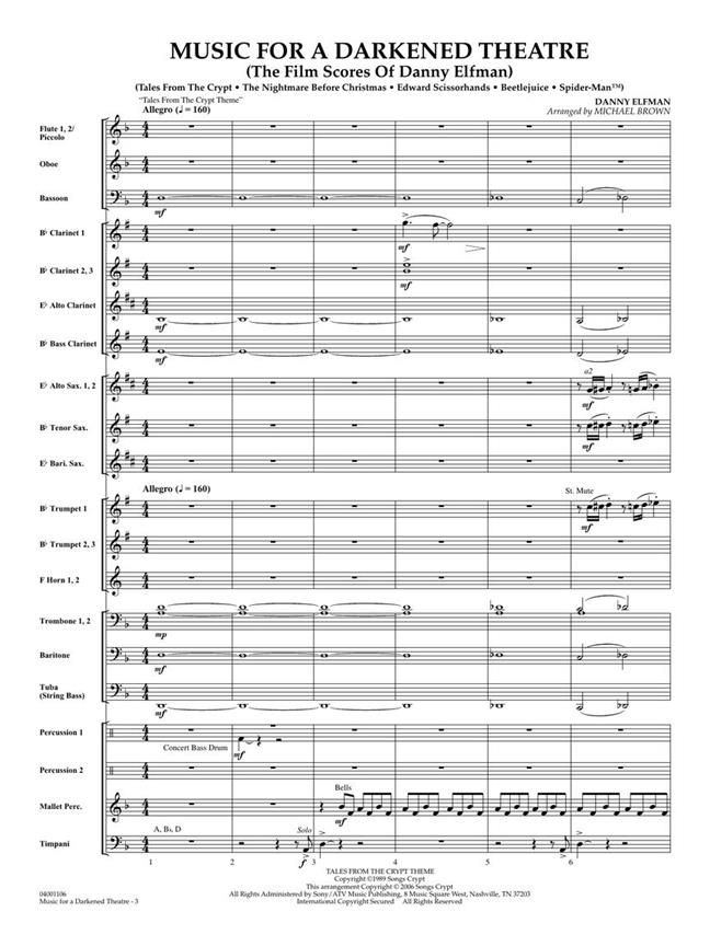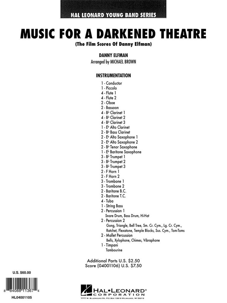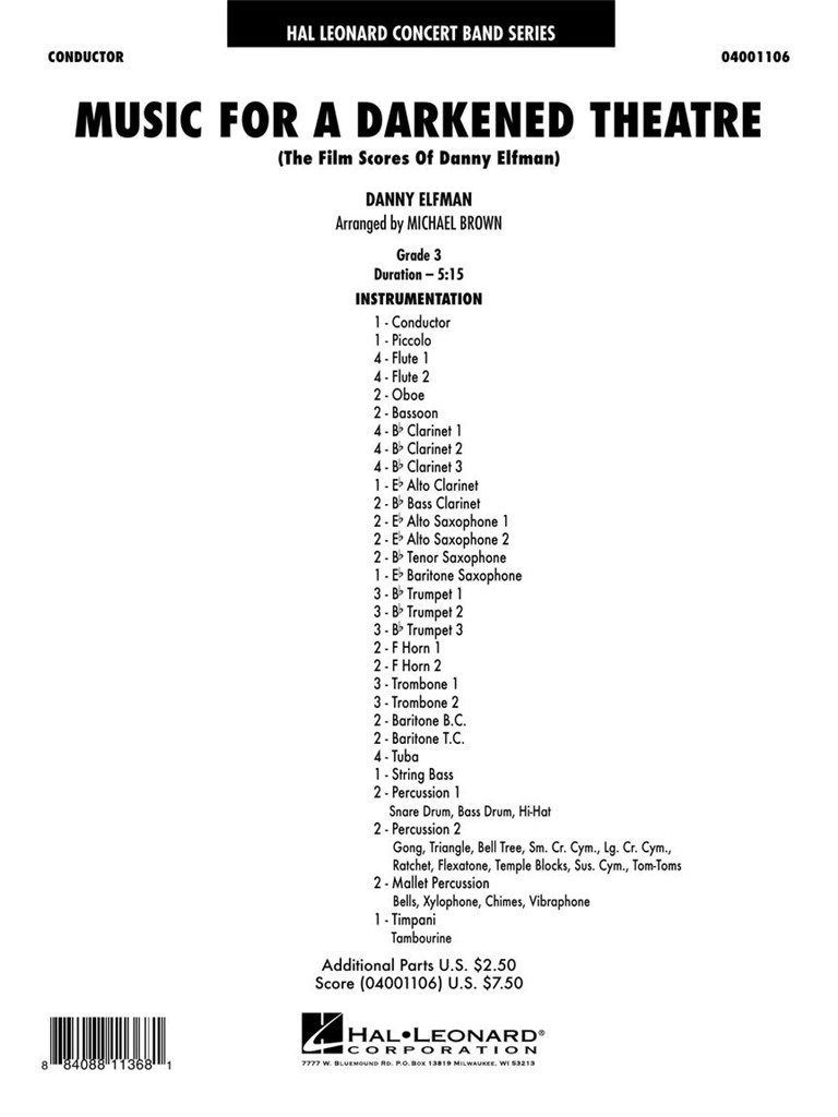 Music for a Darkened Theatre (Arr. Michael Brown) ELFMAN DANNY