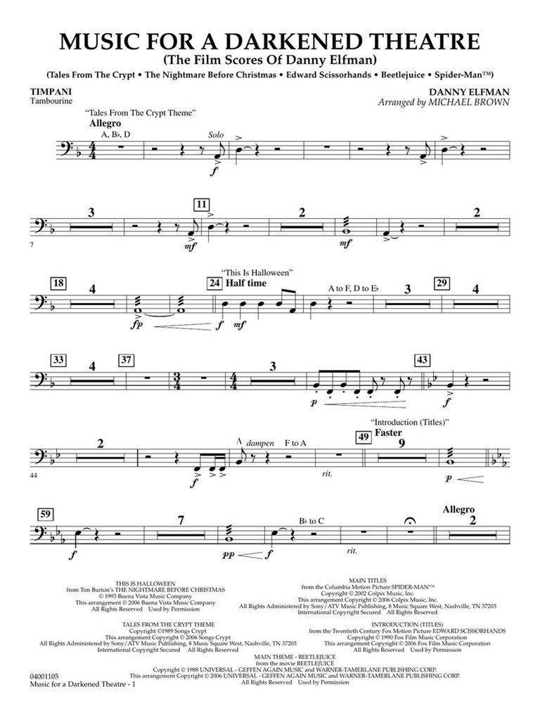 With an unmistakable and distinct style, the music où Danny Elfman is found in many classic offbeat and spooky movies. Featuring themes from Edward Scissorhands, The Nightmare Before Christmas, Spider-Man, Beetlejuice, and Tales from the Crypt, here ' s a terrific arrangement that is sûre to be a hit with your audience.