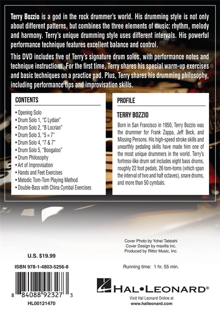 Sa technique très performant dispose d'un excellent équilibre et de contrôle. Ce DVD, Terry Bozzio: Solo Musical fonctionnalités cinq des solos de signature de Terry Drumming, avec des notes de performance et aux directives techniques détaillées.