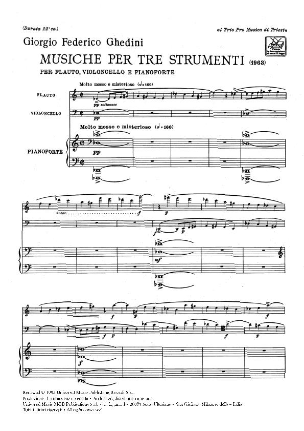 Musiche Per 3 Strum. (Fl., Vc. E Pf.) GHEDINI F.