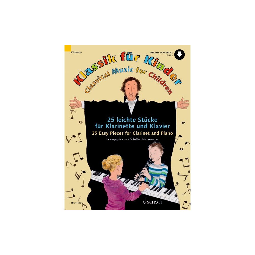 "Musique Classique pour les Enfants" veut initier les élèves de clarinette à la beauté de la littérature baroque concert, classique et romantique. Prudemment, non seulement la littérature clarinette originale a été prise, mais mélodies accrocheuses et des thèmes de l'opéra (Le Freischütz, La Flûte enchantée et autres) et la salle de concert (Four Seasons, Capriccio Italie, la rêverie et d'autres) ont été utilisés ainsi. L'édition commence avec un morceau de la période de la Renaissance, suivie par les grands compositeurs de la musique baroque, européens époques classique et romantique et complété par plusieurs découvertes au large des programmes de concerts communs (Blasius, Reinagel, Sullivan). Quatre siècles d'histoire de la musique qui fera les élèves apprécient la musique classique. Les pièces sont présentées dans des arrangements simples et peut être maîtrisé après environ deux années de scolarité, à l'octave de trois lignes étant laissés de côté.