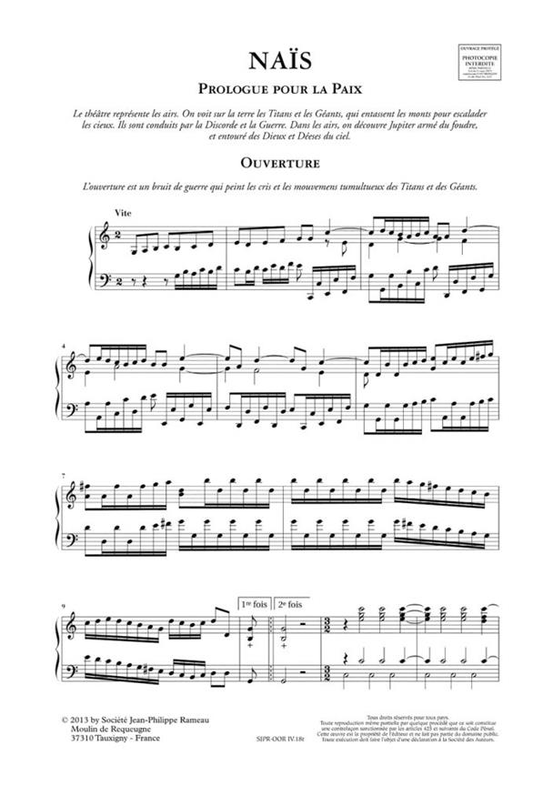The opera Nais was premiered on 22 April 1749 at the Academie royale in the Palais-Royal, Paris, in celebration of the signing of the so-called Treaty of Aachen. It was revived again in August 1764 shortly before Rameau's death and achieved great success as the "opera of peace", even though it did not appear in print during the composer's lifetime.