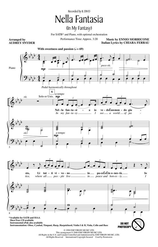 Nella Fantasia (In My Fantasy) . SATB Acc MORRICONE ENNIO / FERRAU C.