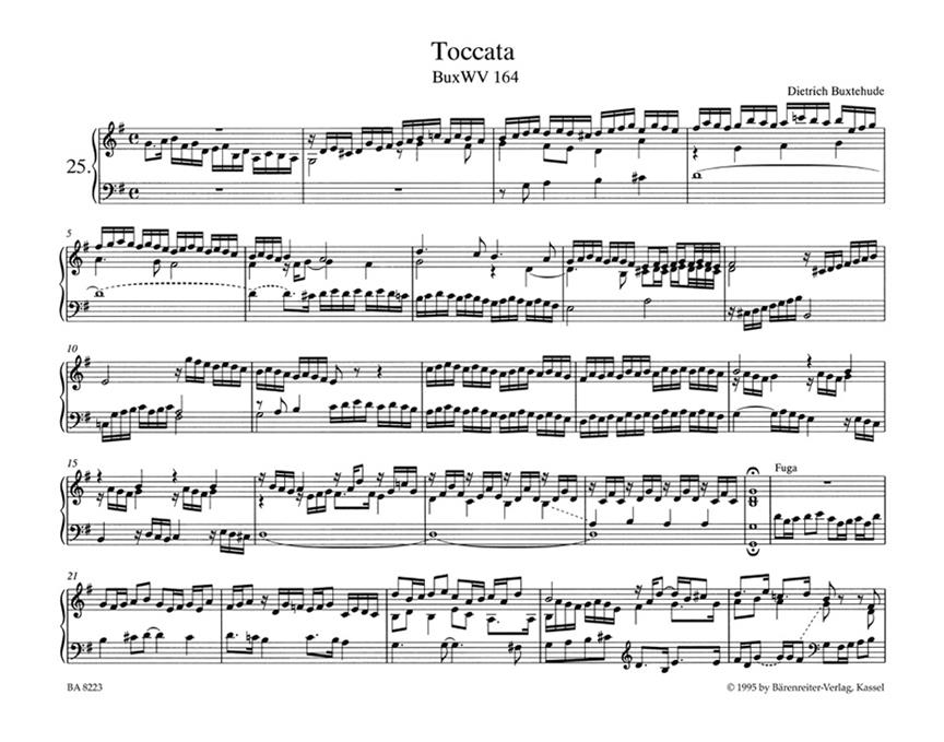 The Complete Buxtehude Organ Works in a five volume performing edition. This truly reliable and comprehensive edition of Buxtehude 's Organ works is based on the latest musicological research. Editions published previously were either incomplete, or editorial amendments were not identified as such. Primarily a practical edition, these volumes reflect the state of the art in Buxtehude scholarship. Each volume includes a comprehensive preface (German/English) and every editorial decision is available for examination in the critical report. All volumes also available separately: Set BA 8220; separate BA 8221-8223, BA 8404, BA8405. Volume 3 BA8223. Freely Composed Organ Works. Preludes, Fugues, Toccatas, Canzonas in G maj, G min, A maj, A min, B maj BuxWV 148-154, 158, 163-165, 170-173, 175, 176, 225.