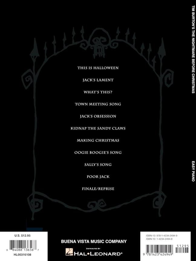 11 tîtres de Danny Elfman issus de la bande originale de 'l'Etrange Noël de Monsieur Jack', arrangés pour piano facile.