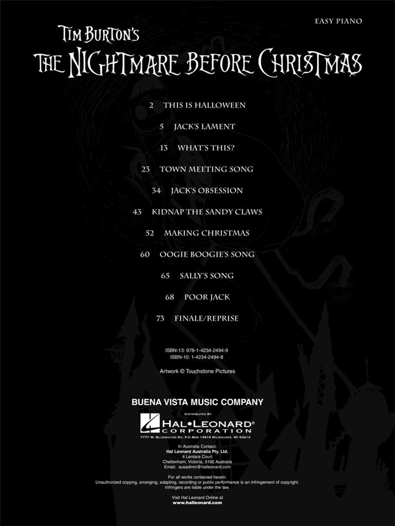 Nightmare Before Christmas Easy Piano ELFMAN DANNY
