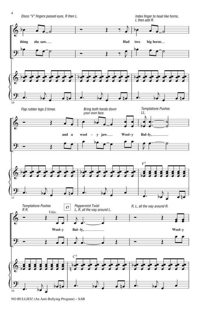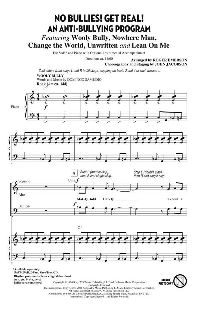 Laissez le pouvoir positif de la musique vous aider à créer une communauté sans harcèlement ! De nombreux élèves vivent le harcèlement comme le plus grand problème de leur vie, avec environ 160 000 élèves aux États-Unis qui refusent d’aller à l’école chaque jour parce qu’ils redoutent l’agression physique et verbale de leurs camarades, ainsi que l’isolement qui découle d’être la cible de rumeurs et de cyberharcèlement. Cette revue de 15 minutes utilise de la pop des années 60 et 70 jusqu’à aujourd’hui, accompagnée de dialogues simples et rapides et de chorégraphies facilement apprenables, pour en faire une expérience d’apprentissage enrichissante pour toute votre école. Parmi ses chansons figurent : Change the World (Eric Clapton), Lean onMe (Bill Withers), Nowhere Man (The Beatles), Unwritten (Natasha Bedingfield), Wooly Bully (Sam the Sham & the Pharaohs). Disponible séparément : SATB, SAB, 2 parties, ShowTrax CD. Les parties rythmiques sont disponibles numériquement (syn, gtr, b, dm, perc). Durée : environ 15h00.