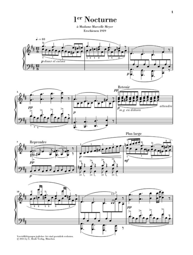 Avec les cinq Nocturnes composés en 1919, Satie a conclu la série de pièces pour piano organisées de façon cyclique qui, d’une certaine manière, constituent l’épine dorsale de son œuvre. Comme modèles, il choisit les pièces éponymes de John Field et Frédéric Chopin, empruntant non seulement les inflexions romantiques et élégiaques, mais aussi la forme tripartite et le mouvement rocking. Totalement originale, à son tour, est l’harmonie qu’il a conçue selon son propre système. Commentant ses Nocturnes, Satie a un jour déclaré : « C’est une expression différente de moi-même ». En effet, ces pièces, qui ne sont pas difficiles à jouer, semblent exceptionnellement sérieuses et bien éloignées de l’absurdité, de la parodie et de l’atmosphère de cabaret qui colore une si grande partie de son œuvre.