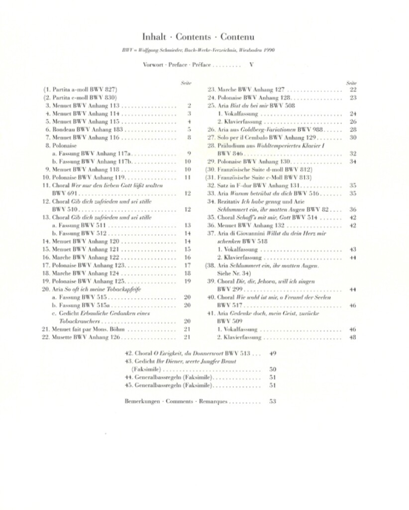 Bach fit cadeau de deux recueils manuscrits de partitions à sa femme Anna Madgdalena. Par sa reliure recouverte de parchemin et dorée sur tranche, le second est particulièrement précieux. Dans ce petit recueil (Büchlein) daté de 1725, il nota un grand nombre de pièces de sa propre plume, ou de celle d’autres compositeurs, destinées au clavier et dans tous les genres. Figurant chaque année au palmarès des titres les plus vendus de notre catalogue, l’édition Urtext parue chez Henle rend, gravé de manière remarquable à la main et de la manière la plus fidèle, l’intégralité de ce manuscrit, à l’exception des mouvements extraits des «Suites françaises» (HN 71) et des «Partitas»(HN 28) figurant également dans le Notenbüchlein, qui eux, comme chacun sait, se trouvent ailleurs dans notre catalogue.