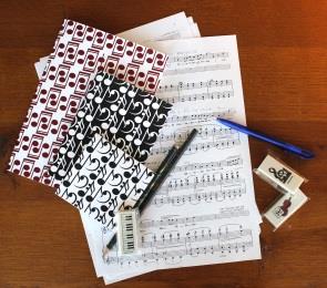 Pack of 3 Notebooks in A5, A6 and 9x9cm size with musical notation design