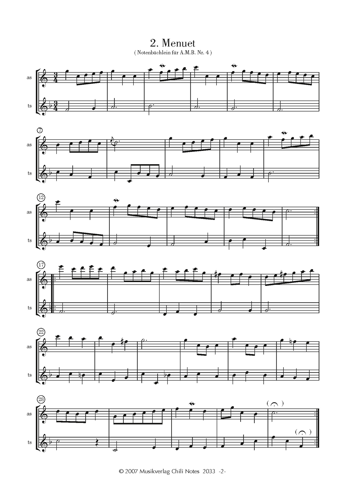 Duett für eine Flöte und eine Violine BACH CARL PHILIPP EMMANUEL Saxophone Alto et Ténor Chili Notes 35,30€