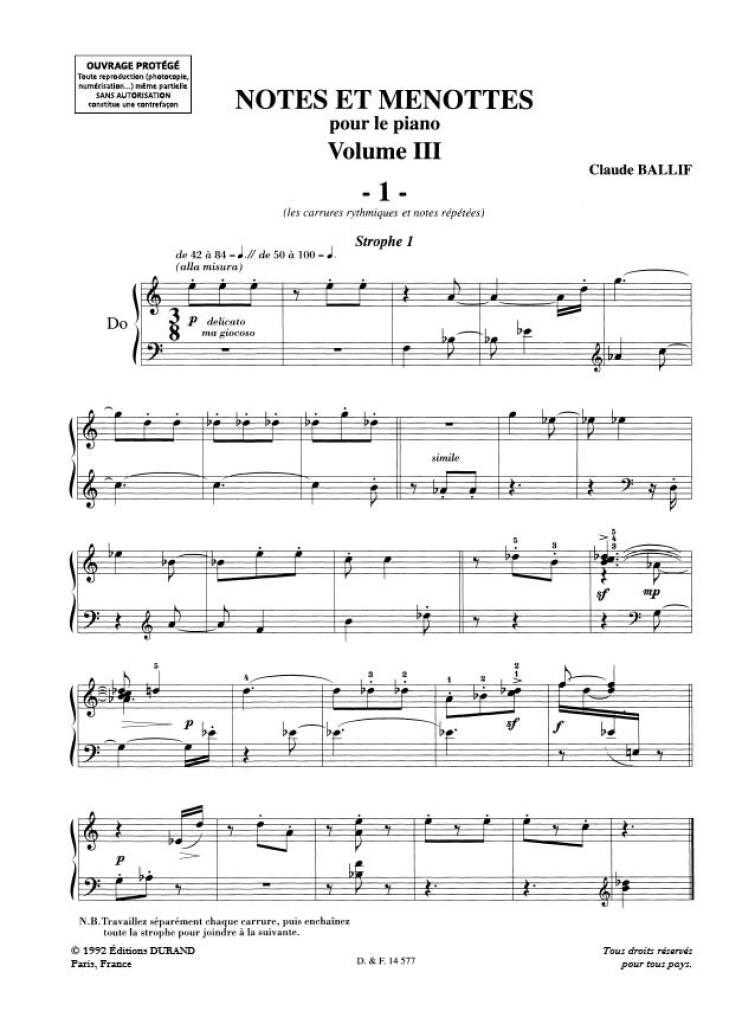 Notes And Menottes Vol.3 Piano BALLIF CLAUDE
